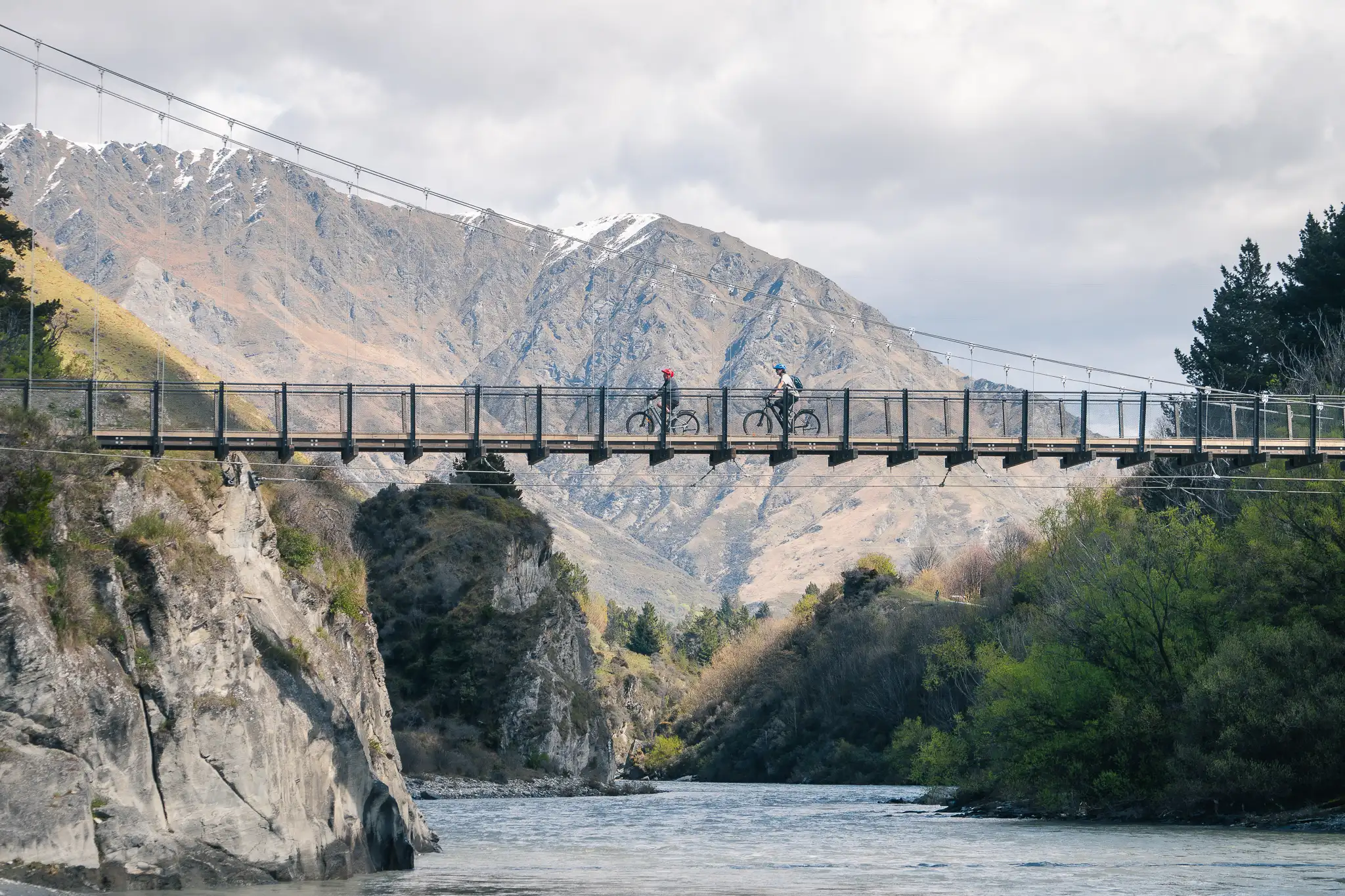 Starting at Tucker Beach, you’ll roll out across the iconic 90 m Kimi‑ākau Suspension Bridge, a breathtaking gateway linking Frankton’s trail network to the gorge. Towering above the Shotover River, it offers sweeping canyon views—an exhilarating entrance to the 5.5 km route.
